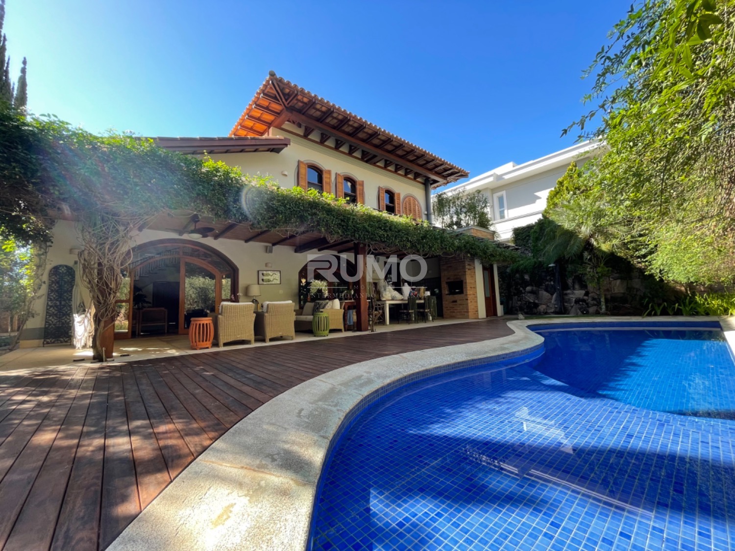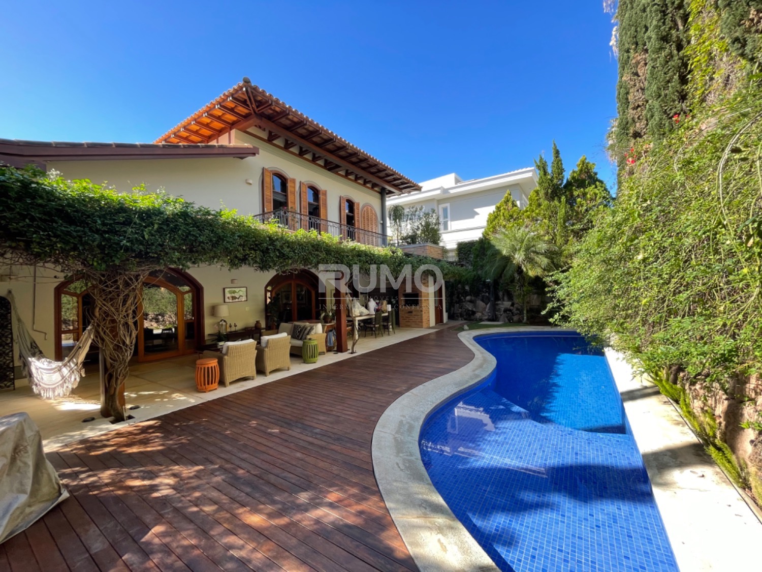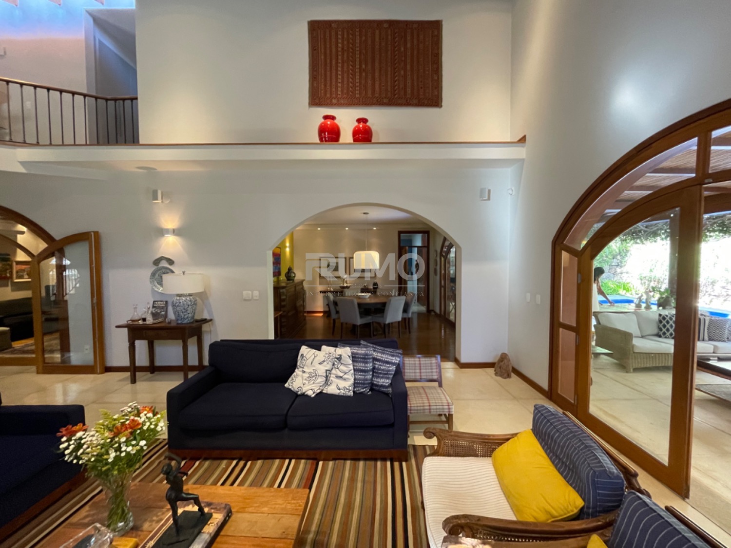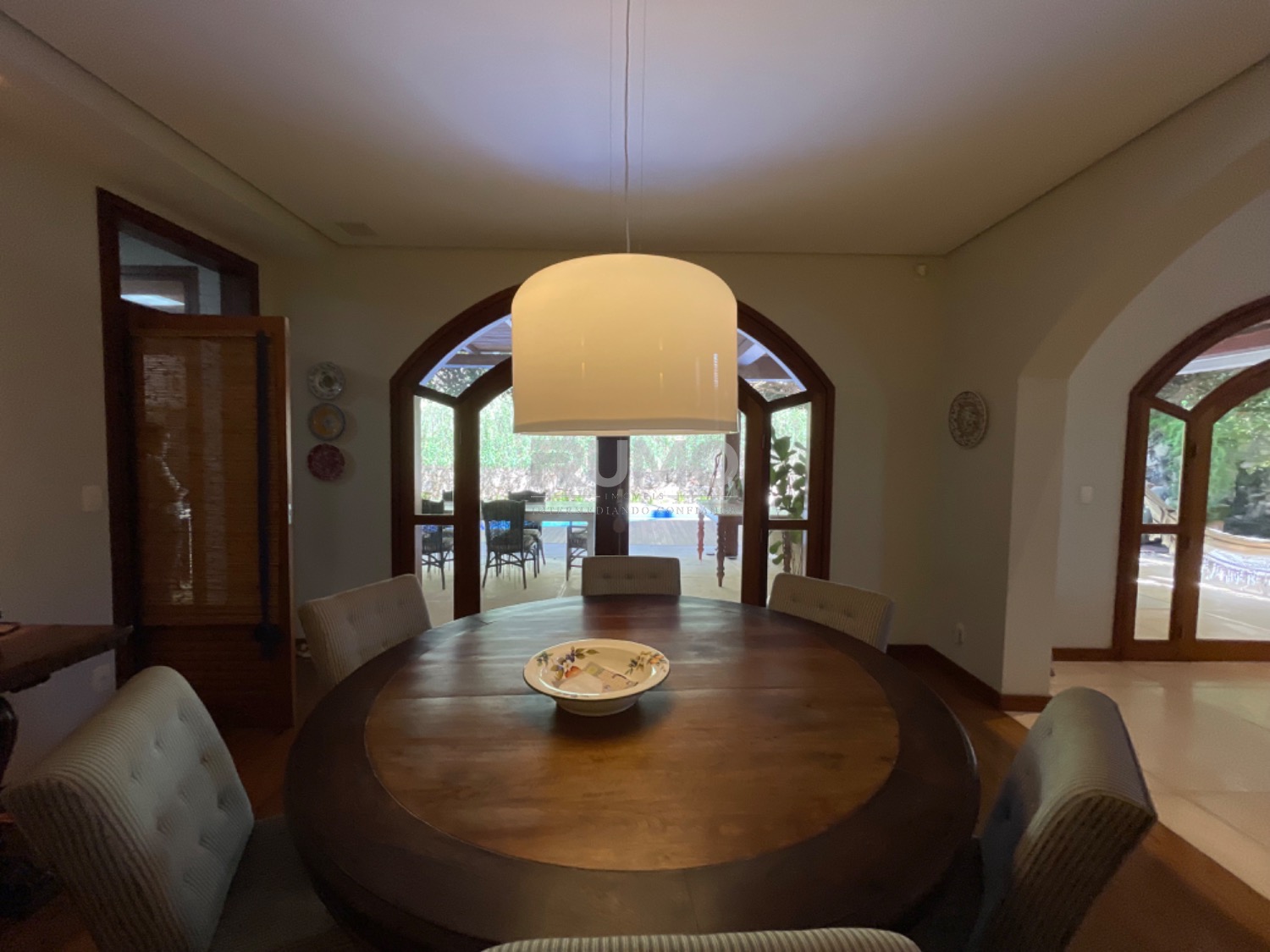 Living com 3 amplos ambientes, sendo o estar com lareira, pé direito duplo, sala de refeições, home theater, escritório, lavabo. espaço gourmet avarandado com churrasqueira, bancada da churrasqueira com duas portas refrigeradas em inox, piscina e banheiro/vestiário. Na lateral da casa um pomar com frutas variadas. Área da piscina com total privacidade. Todos os dormitórios tem varanda