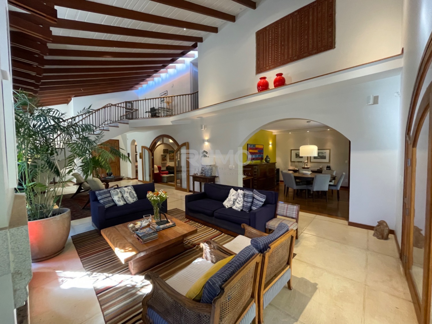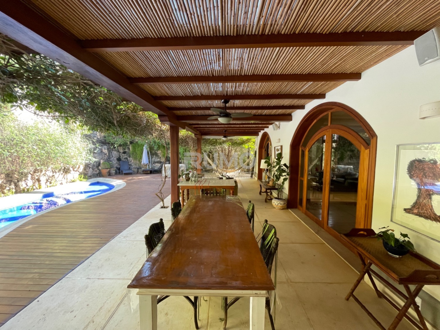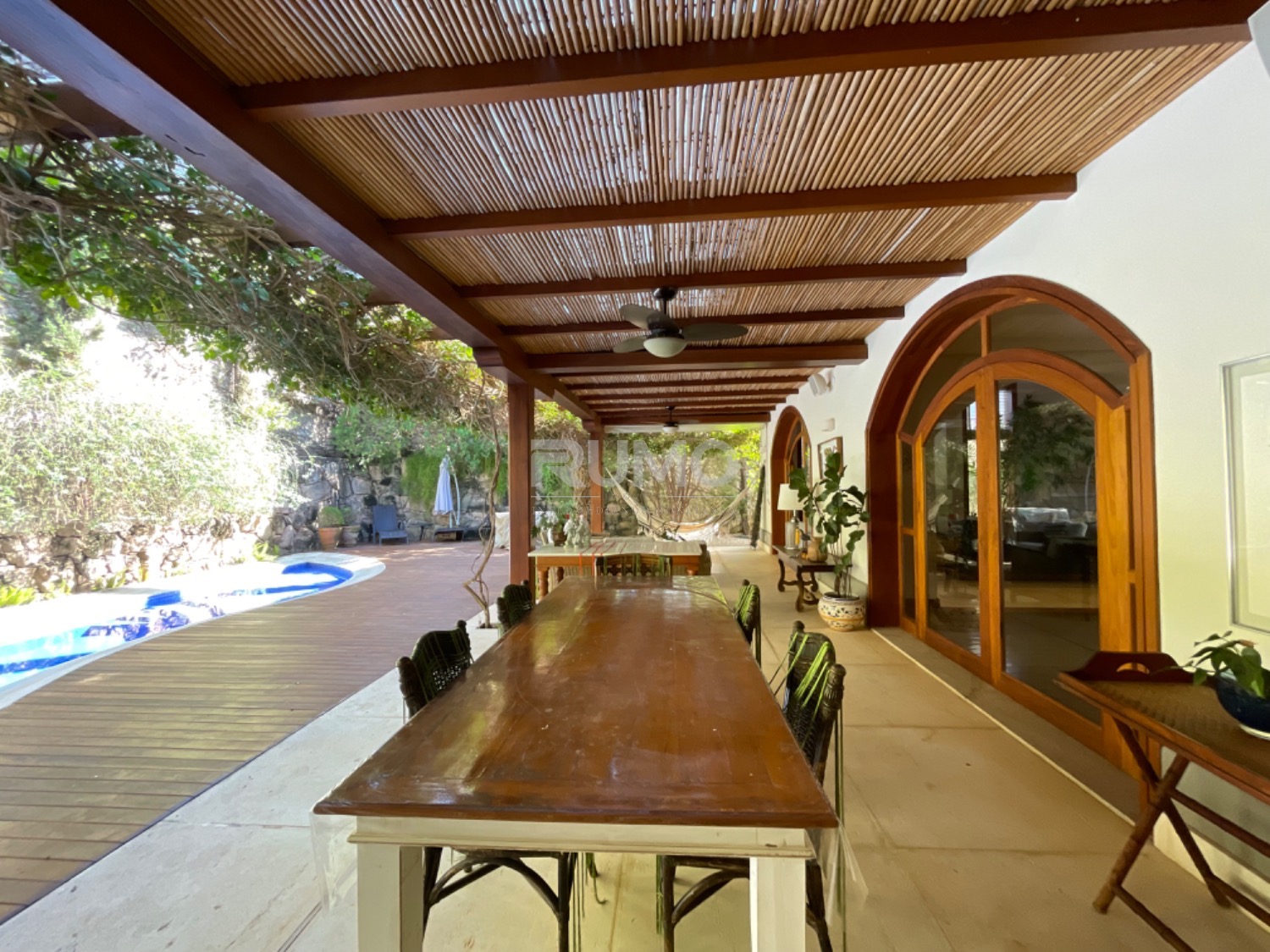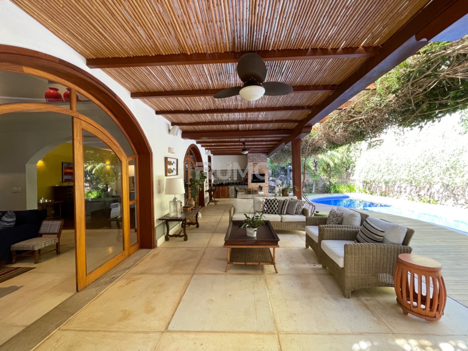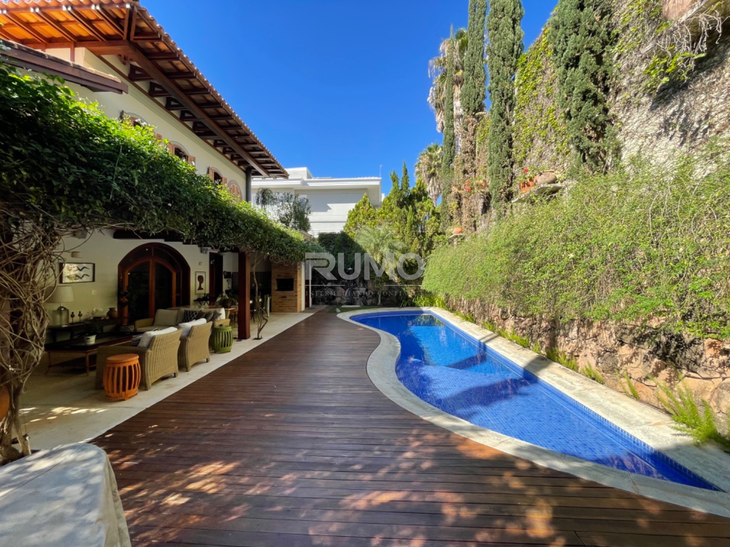 Living com 3 amplos ambientes, sendo o estar com lareira, pé direito duplo, sala de refeições, home theater, escritório, lavabo. espaço gourmet avarandado com churrasqueira, bancada da churrasqueira com duas portas refrigeradas em inox, piscina e banheiro/vestiário. Na lateral da casa um pomar com frutas variadas. Área da piscina com total privacidade. Todos os dormitórios tem varanda