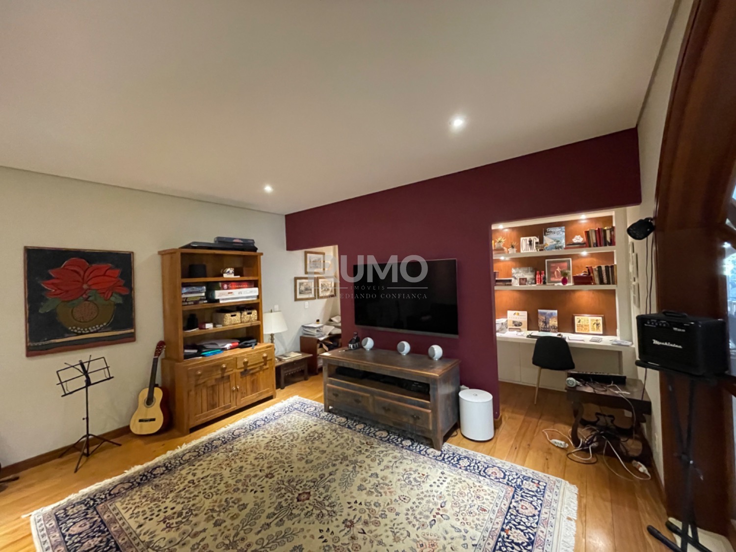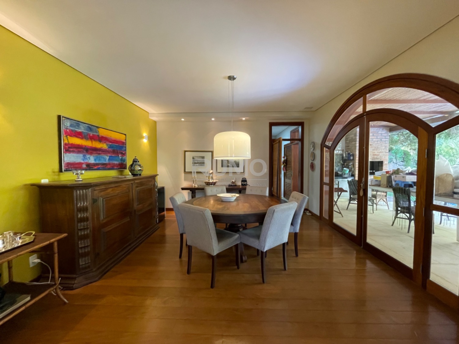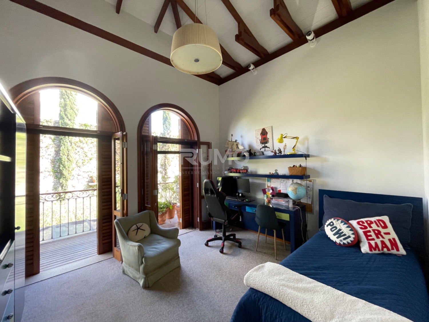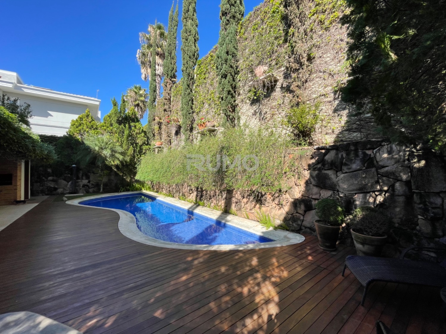 Living com 3 amplos ambientes, sendo o estar com lareira, pé direito duplo, sala de refeições, home theater, escritório, lavabo. espaço gourmet avarandado com churrasqueira, bancada da churrasqueira com duas portas refrigeradas em inox, piscina e banheiro/vestiário. Na lateral da casa um pomar com frutas variadas. Área da piscina com total privacidade. Todos os dormitórios tem varanda