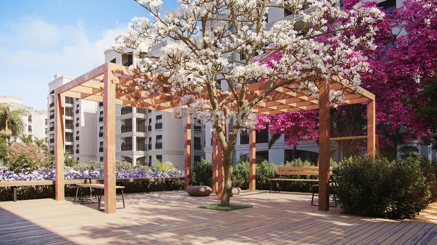 O projeto oferece plantas tipo, garden com quintal privativo e coberturas duplex, distribuídas em torres com apenas 4 apartamentos por andar, totalizando 196 unidades. Todos os apartamentos contam com 2 vagas de garagem, com opção de compra da terceira vaga, além de dois elevadores por torre, garantindo praticidade e conforto no dia a dia.